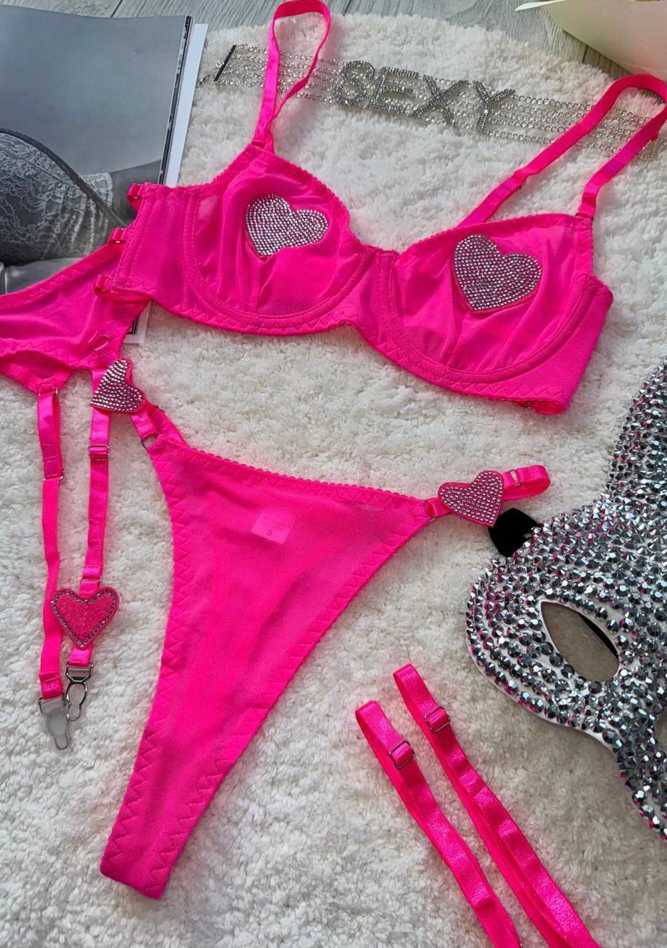 Set obsahuje podprsenka, kalhotky, pas a podvazky.
