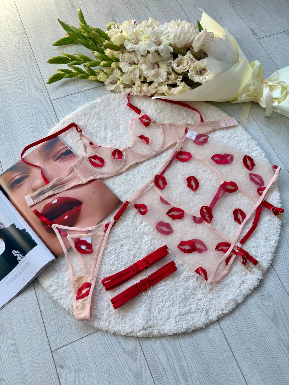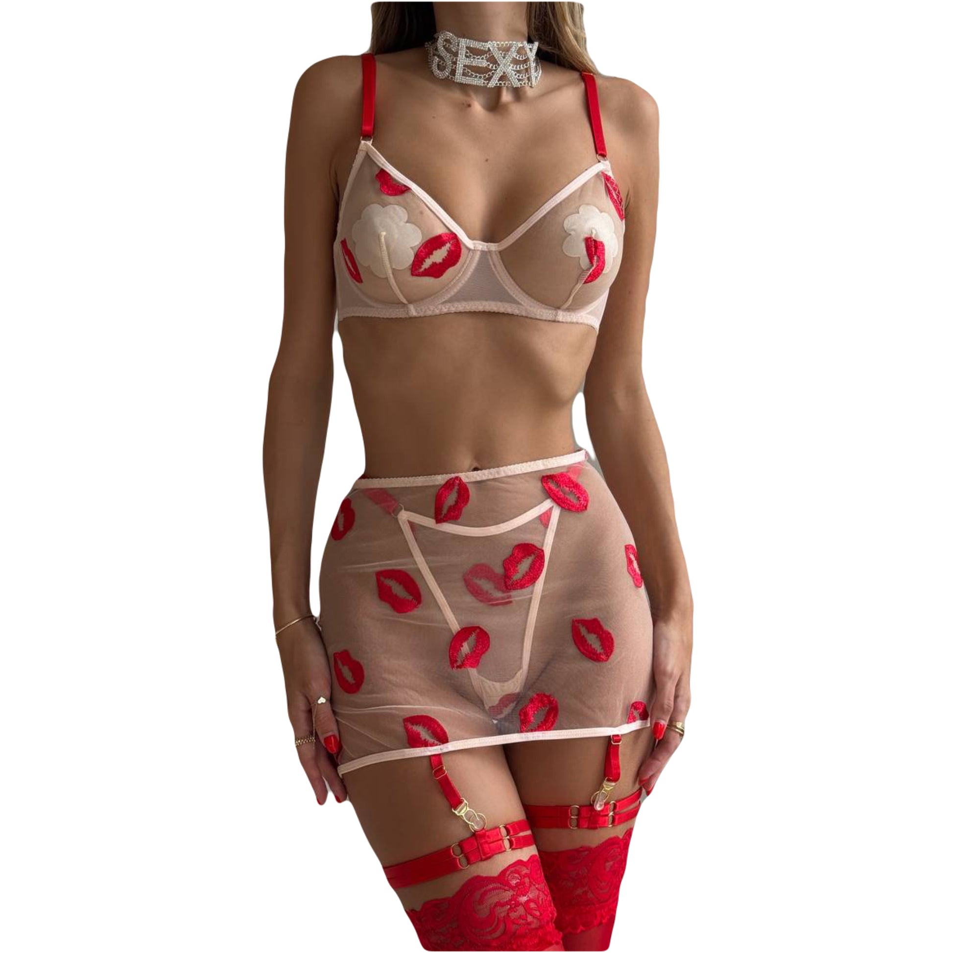 Set obsahuje podpersenka, kalhotky, suken a podvazky.