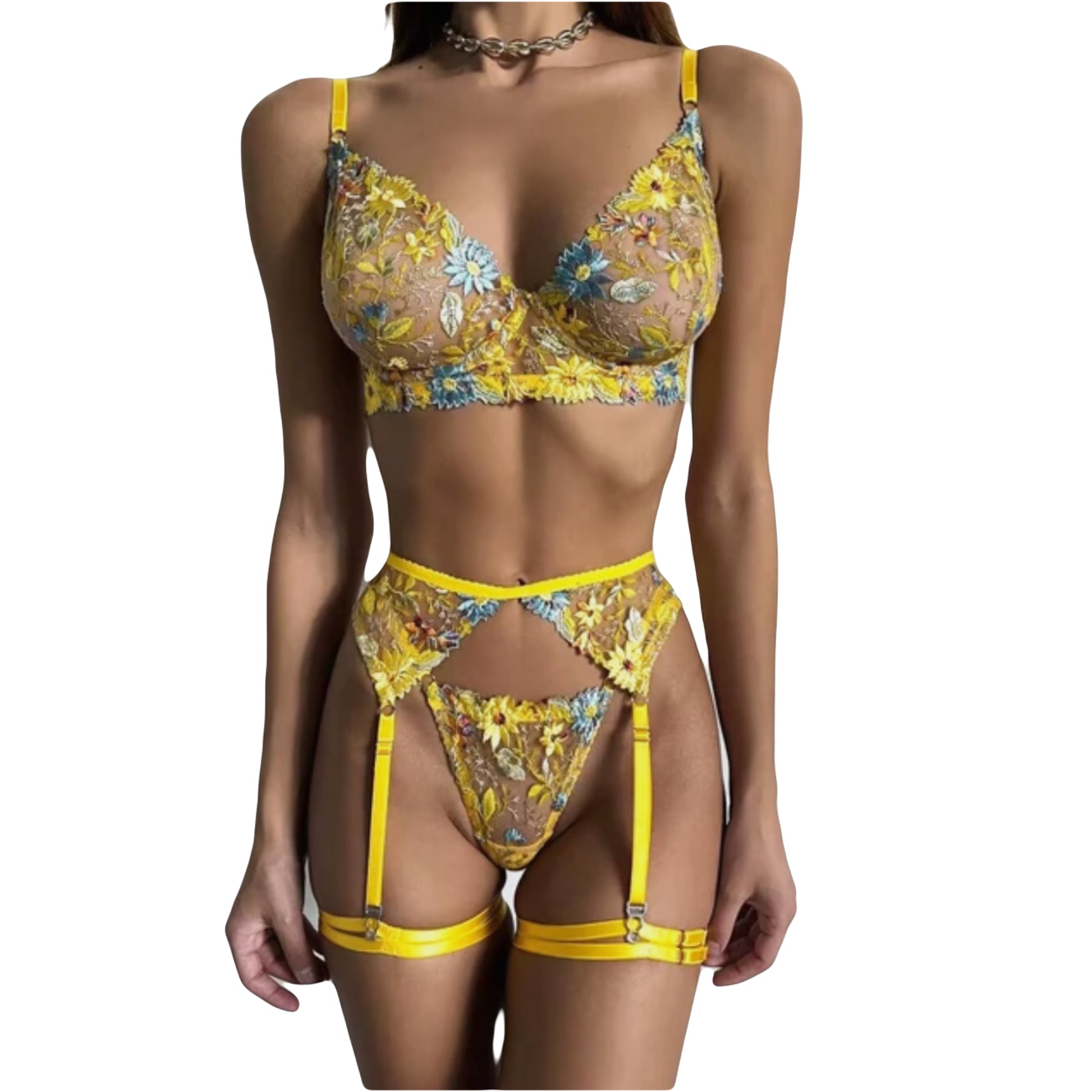 Set obsahuje podprsenka, kalhotky, pas a podvazky.